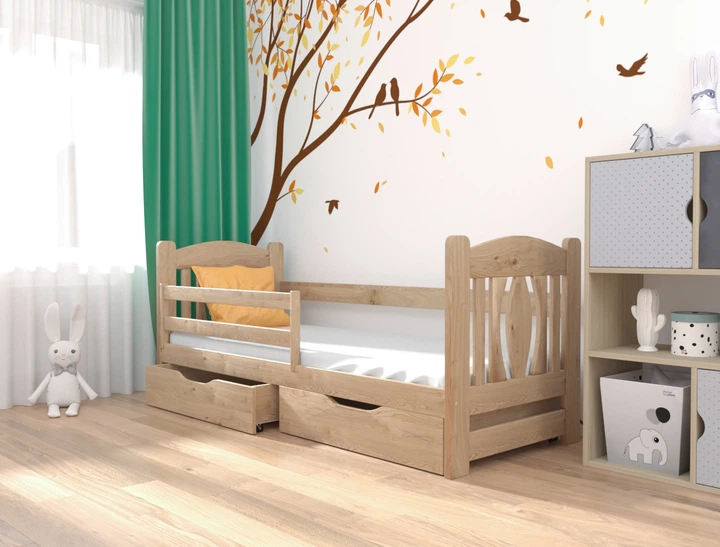 Ліжко односпальне в дитячу з натурального дерева 90х200 з бортиком та ящиками (без матраца) ТМ ЛУНА Оскар бук