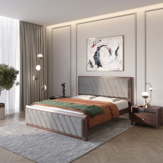 Односпальне дерев'яне ліжко Mebigrand Барселона Б6 Горіх темний/Аляска 93 (Сірий) 90х200 см (MBG-14379)