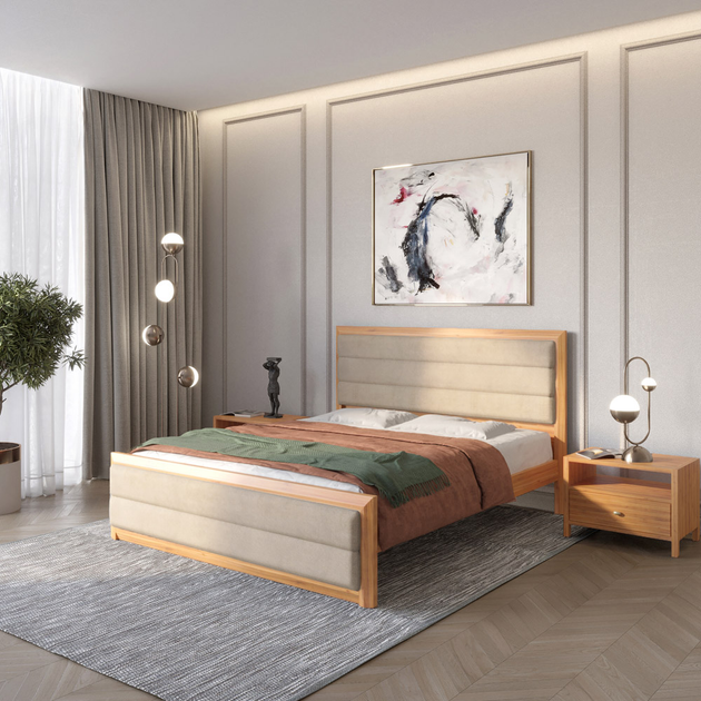 Односпальне дерев'яне ліжко Mebigrand Барселона Б5 Вільха/Аляска 23 (Бежевий) 90х200 см (MBG-13047)