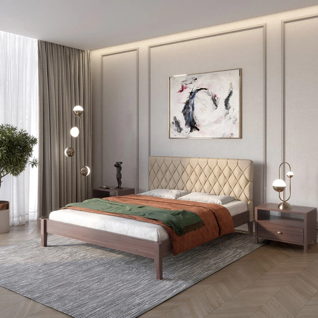 Односпальне дерев'яне ліжко Mebigrand Лондон ДК Горіх темний/Аляска 23 (Бежевий) Б1 80х190 см (MBG-6587)