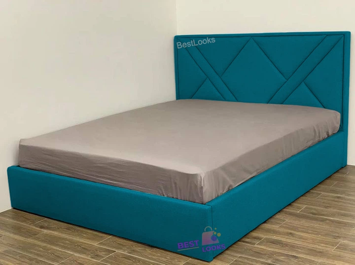 Ліжко двоспальне 160x200 Місті Mebel-Day з підйомним механізмом Велюр Аквамарин Флокс (88)