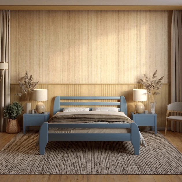 Односпальне дерев'яне ліжко Mebigrand Мілан Сіро-синій (S7010R90B) 90х200 см (MBG-6439)
