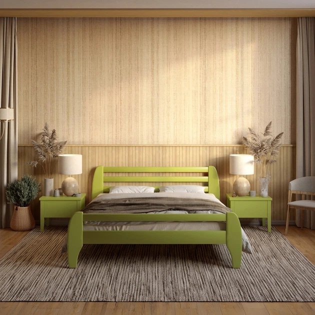 Односпальне дерев'яне ліжко Mebigrand Мілан Оливковий (RAL1020) 90х200 см (MBG-6397)