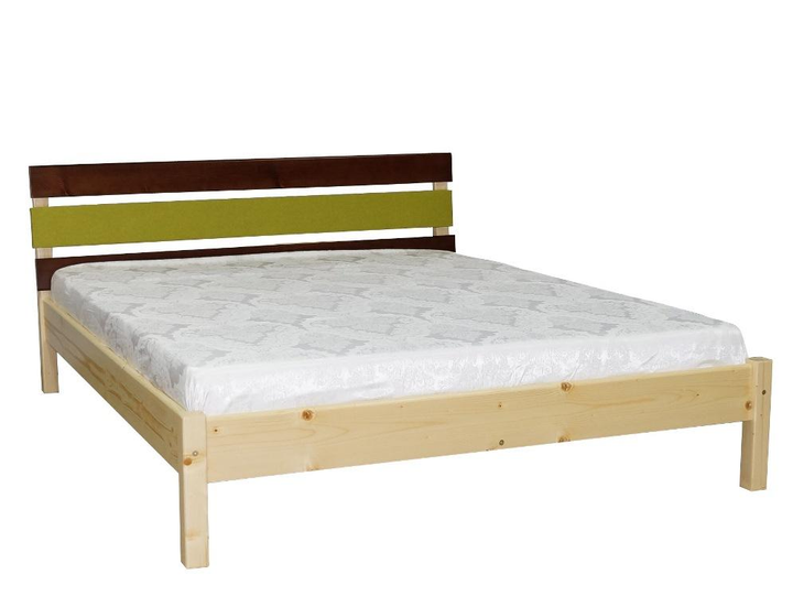 Двоспальне дерев'яне ліжко Л-248 натуральний (прозорий лак) / горіх + етна салатова 120х200 Скіф