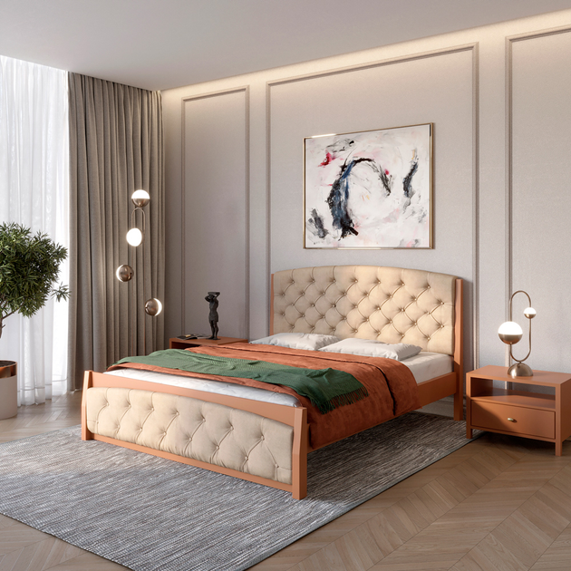 Односпальне дерев'яне ліжко Mebigrand Мехіко Коричневий (RAL8025)/Аляска 23 (Бежевий) 80х190 см (MBG-12010)