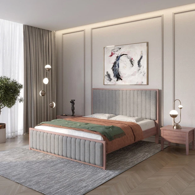 Односпальне дерев'яне ліжко Mebigrand Відень Горіх темний/Аляска 93 (Сірий) 90х200 см (MBG-10965)