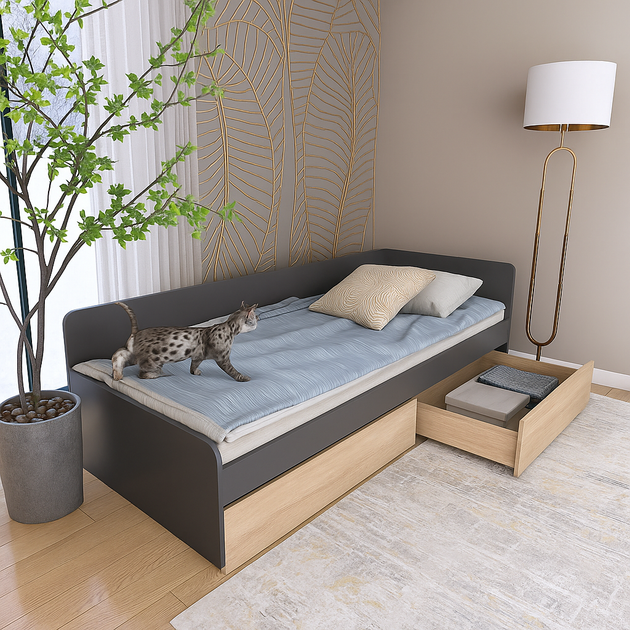 Ліжко односпальне Еверест-800 з ящиками Графіт + сонома