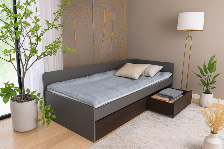 Ліжко односпальне Еверест-800 з ящиками Графіт + венге
