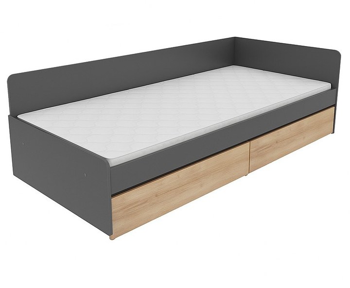 Односпальне Ліжко-800 із ящиками Єверест (194*85*60 см) Сірий + крафт білий