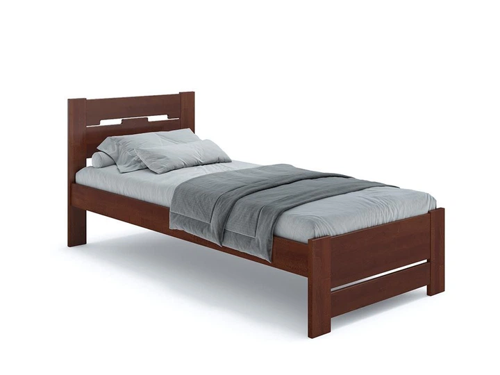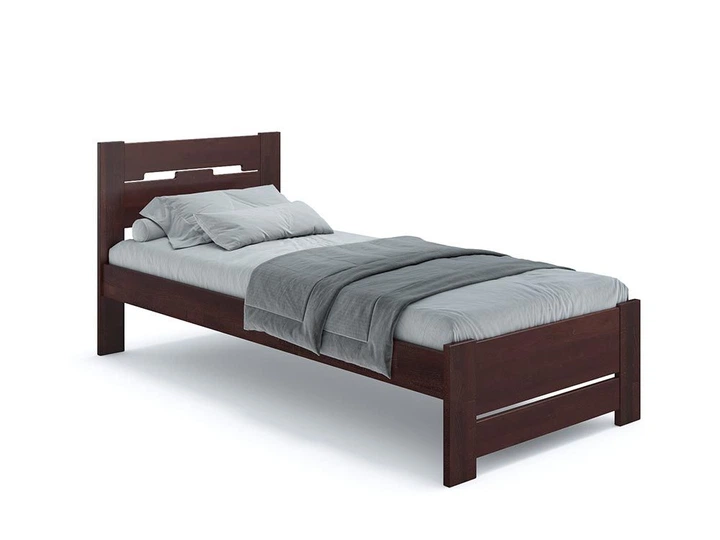 Ліжко односпальне з натурального дерева сосна Мілан MebiGrand в спальню 90x200 Горіх темний