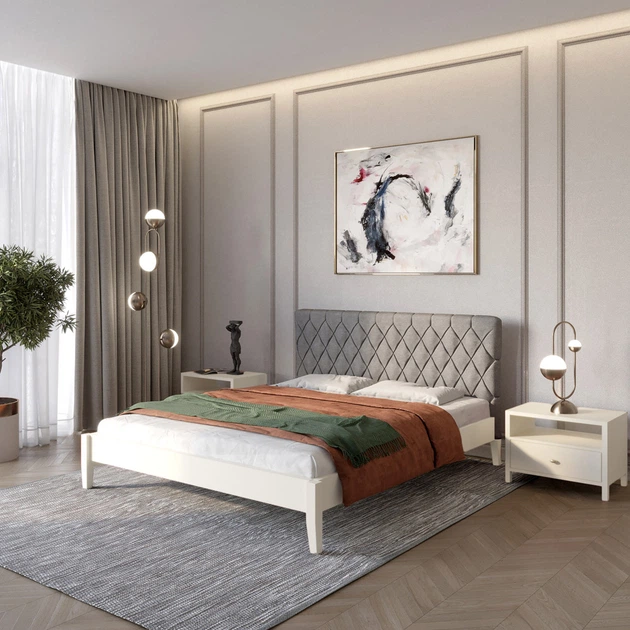 Двоспальне дерев'яне ліжко Mebigrand Венеція ДК Айворі (S0505Y30R)/Аляска 93 (Сірий) 160х190 см (MBG-5568)