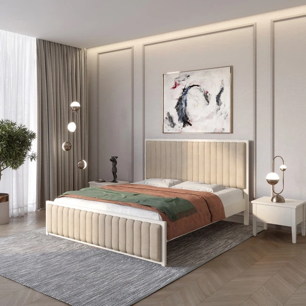 Двоспальне дерев'яне ліжко Mebigrand Венеція ДК Білий (RAL9003)/Аляска 23 (Бежевий) 160х190 см (MBG-5769)