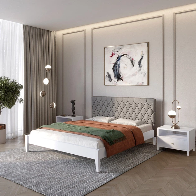 Двоспальне дерев'яне ліжко Mebigrand Відень Білий (RAL9003)/Аляска 93 (Сірий) 160х190 см (MBG-10855)