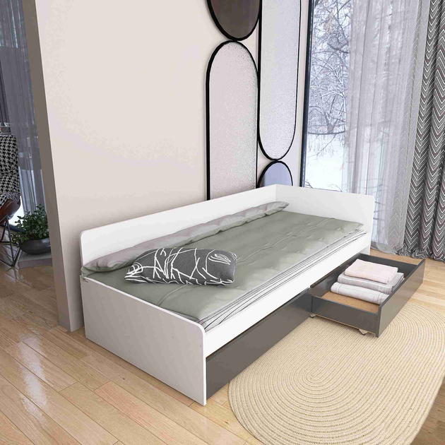 Ліжко 800 із шухлядами 80х190, Білий, Графіт