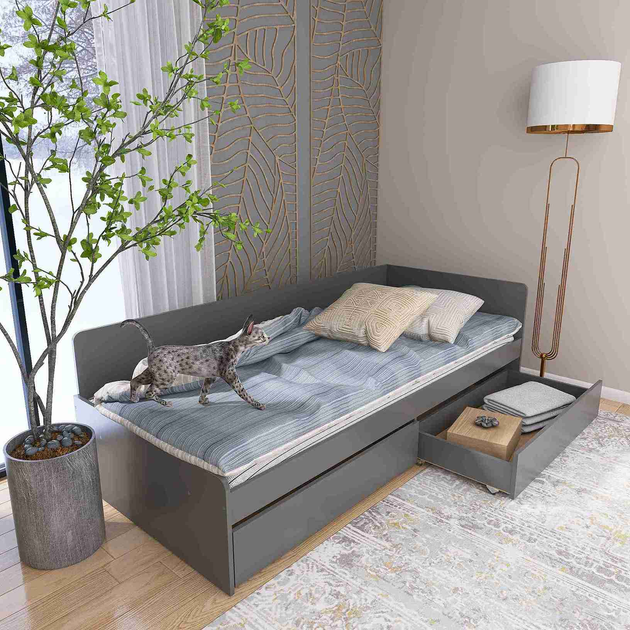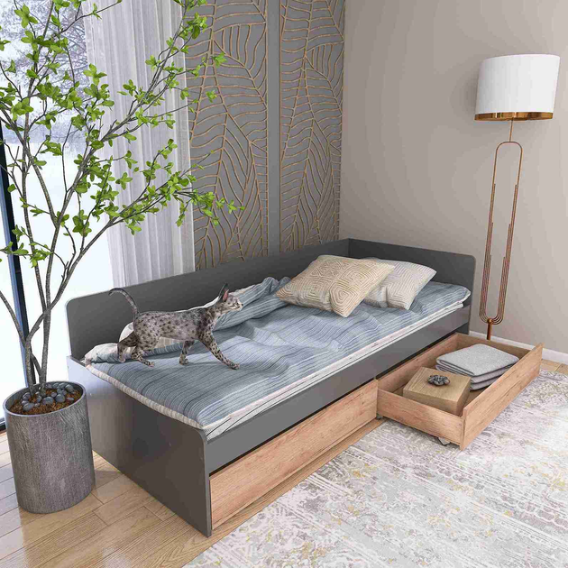 Ліжко 800 із шухлядами 80х190, Графіт, Дуб крафт золотий