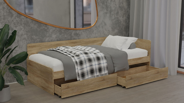 Односпальне ліжко з ящиками Kompanit-90+2 дуб сонома