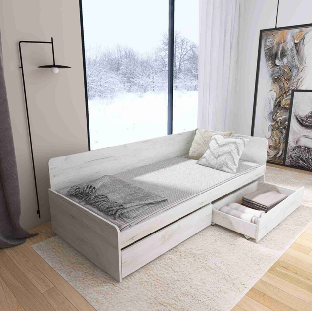 Ліжко 800 з шухлядами 80х190, Дуб крафт білий