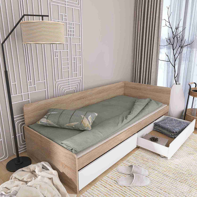Ліжко 800 з шухлядами 80х190, Дуб сонома, Білий