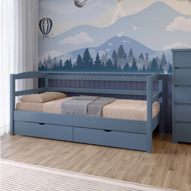 Дитяче ліжко Mebigrand Чикаго Літл-2 Синій (S 7010 R 90B) 80х190 см із заднім бортиком та ящиками (MBG-2605)