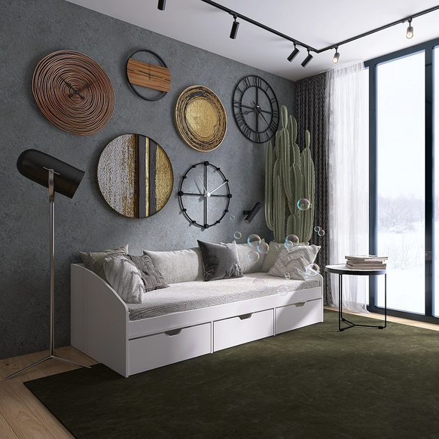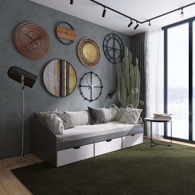 Ліжко Комфорт 3 з шухлядами 80х190, Графіт, Німфея Альба