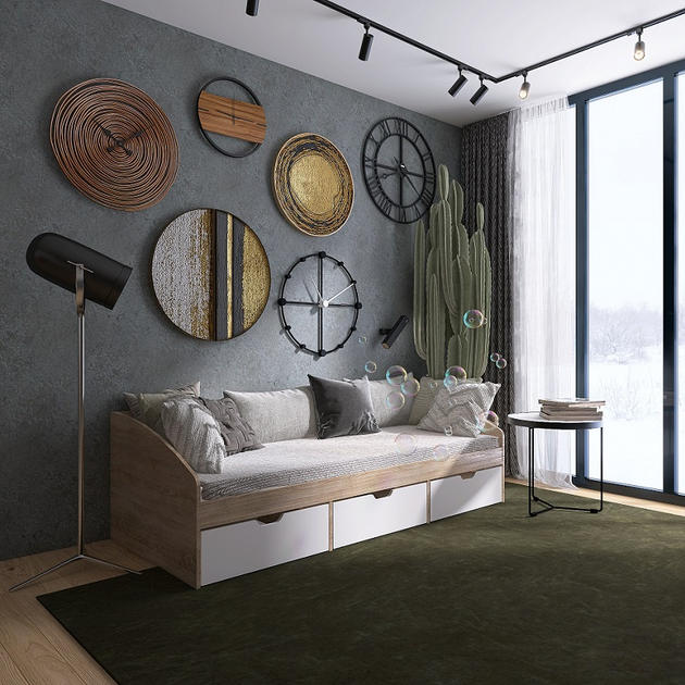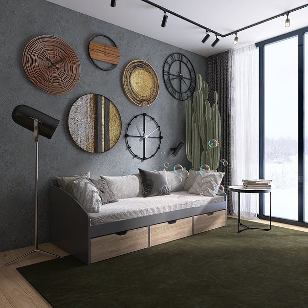 Ліжко Комфорт 3 з шухлядами 80х190, Графіт, Дуб Сонома