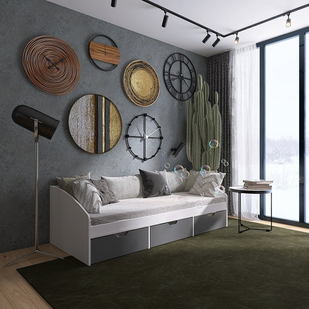 Ліжко Комфорт 3 з шухлядами 80х190, Німфея Альба, Графіт