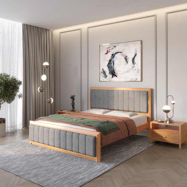 Односпальне дерев'яне ліжко Mebigrand Барселона Б1 Вільха/Аляска 93 (Сірий) 80х200 см (MBG-11775)