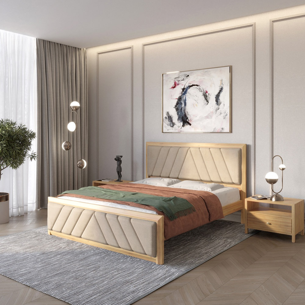 Односпальне дерев'яне ліжко Mebigrand Барселона Б1 Яблуня/Аляска 23 (Бежевий) 80х200 см (MBG-11559)