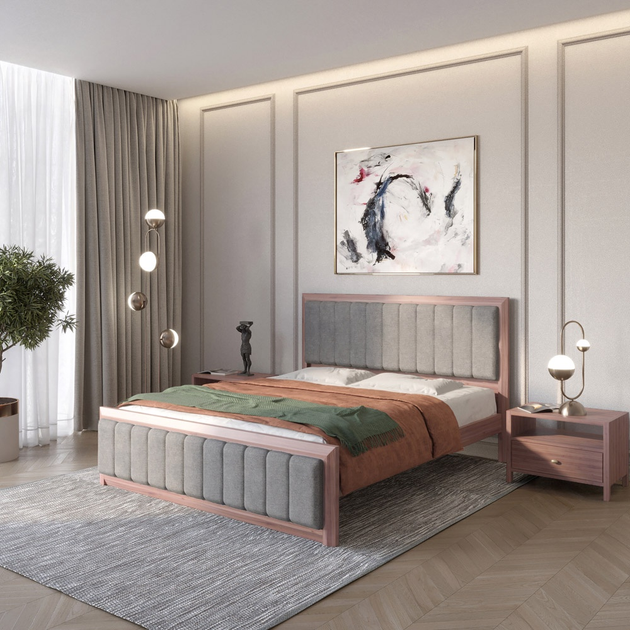Односпальне дерев'яне ліжко Mebigrand Рим ДК Коричневий (RAL8025)/Аляска 93 (Сірий) Б3 80х200 см (MBG-5097)