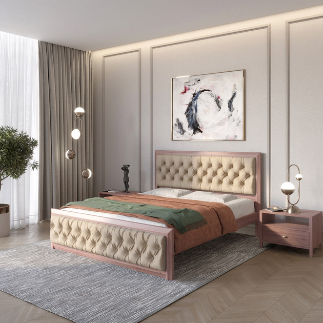Односпальне дерев'яне ліжко Mebigrand Барселона Б5 Горіх темний/Аляска 23 (Бежевий) 90х190 см (MBG-13082)
