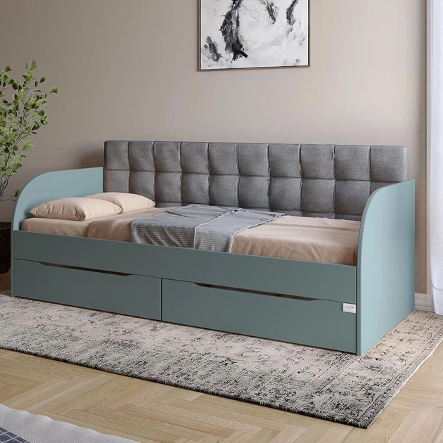 Односпальне дитяче ліжко LION Л-7 з ящиками та ламелями 90x200 см Німфея Альба