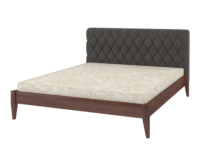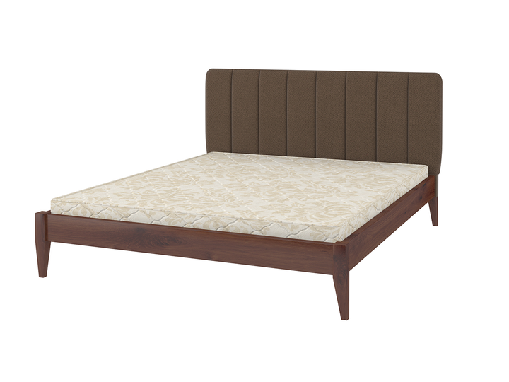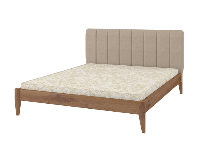 Ліжко двоспальне з м'яким узголів'ям Лондон ДК 180х200 MebiGrand Горіх лісовий/Коричневий (натуральне дерево/тканина Аляска