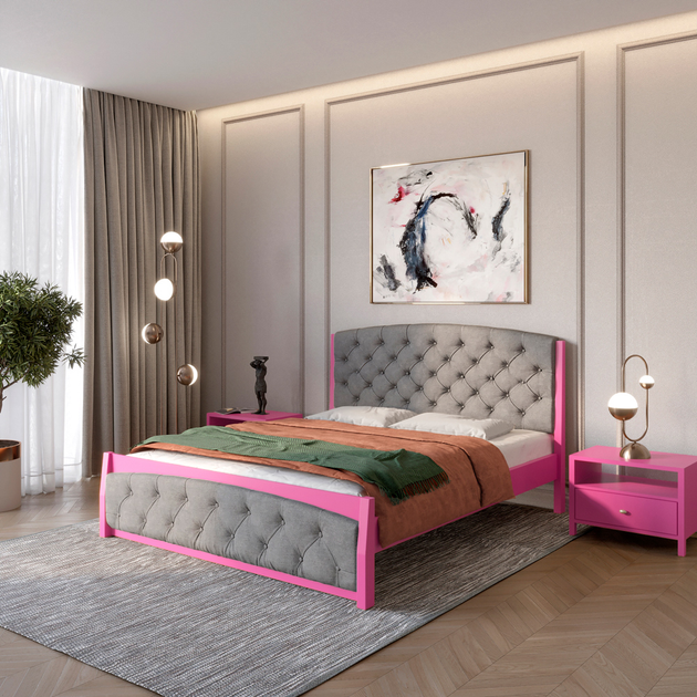 Односпальне дерев'яне ліжко Mebigrand Мехіко Рожевий (S2060R30B)/Аляска 93 (Сірий) 90х200 см (MBG-12336)