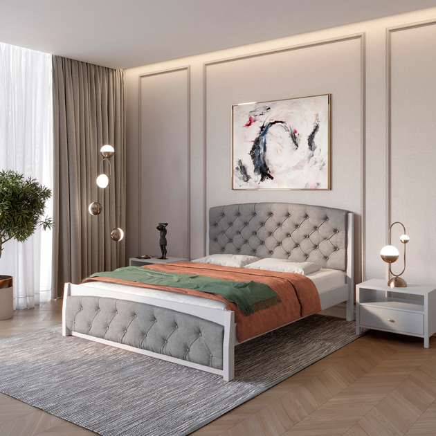 Односпальне дерев'яне ліжко Mebigrand Мехіко Білий (RAL9003)/Аляска 93 (Сірий) 90х190 см (MBG-12251)