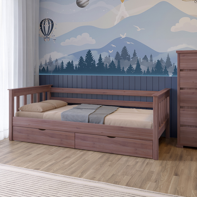 Дитяче ліжко Mebigrand Скандинавія Літл-2 Горіх лісовий 90х190 см із заднім бортиком та ящиками (MBG-2631)