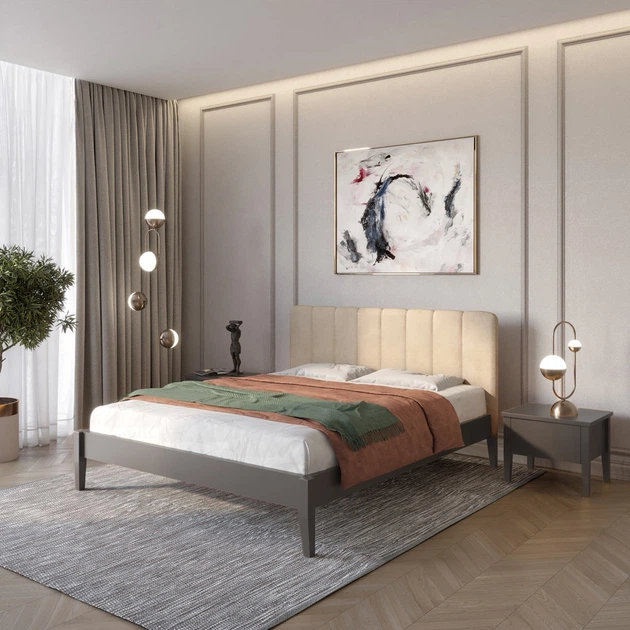 Двоспальне дерев'яне ліжко Mebigrand Рим ДК Графітовий (RAL9011) /Аляска 23 (Бежевий) Б3 160х190 см (MBG-5106)
