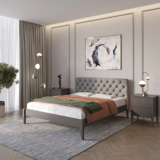 Двоспальне дерев'яне ліжко Mebigrand Рим ДК Графітовий (RAL9011) /Аляска 93 (Сірий) Б3 160х190 см (MBG-5112)