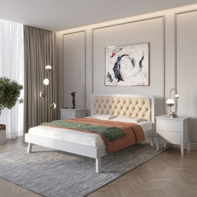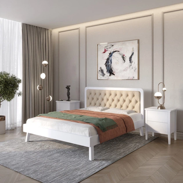 Односпальне дерев'яне ліжко Mebigrand Торонто Т5 Яблуня/Аляска 23 (бежевий) 80х190 см (MBG-10531)
