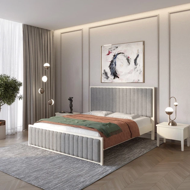 Односпальне дерев'яне ліжко Mebigrand Відень Світло-сірий (RAL7040)/Аляска 23 (Бежевий) 90х200 см (MBG-10953)