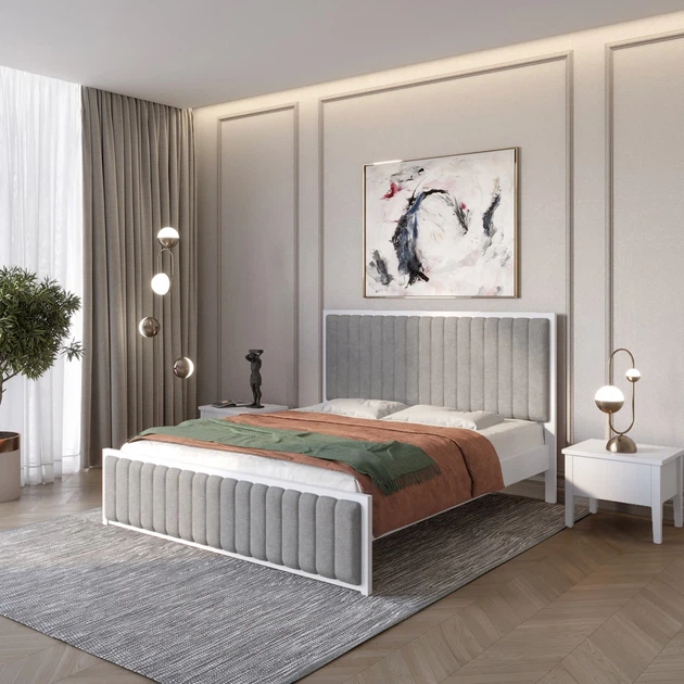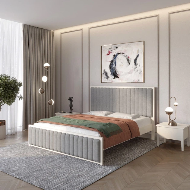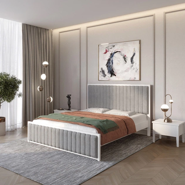 Односпальне дерев'яне ліжко Mebigrand Відень Білий (RAL9003)/Аляска 93 (Сірий) 90х200 см (MBG-10960)