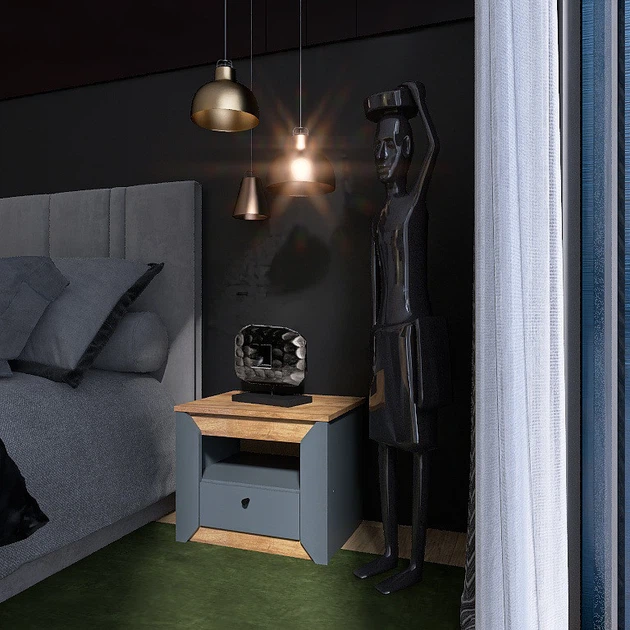 Тумба приліжкова Еверест Нордік-500 Графіт + Дуб крафт золотий (DTM-5544)