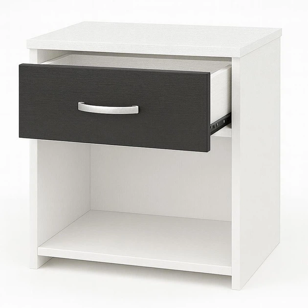 Приліжкова тумба №4 «Білий + Антрацит» (ДСП) 500 400 350 мм (з висувною скринькою та нішою)