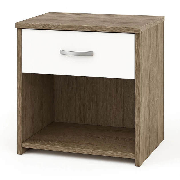 Приліжкова тумба №4 «Дуб сонома трюфель + Біла» (ДСП) 500 400 350 мм (з висувною скринькою та нішою)