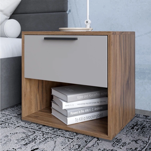 Тумбочка нічна Майстер Форм Брайт Дуб крафт сірий + Дуб крафт білий (40х37,6х40 см)