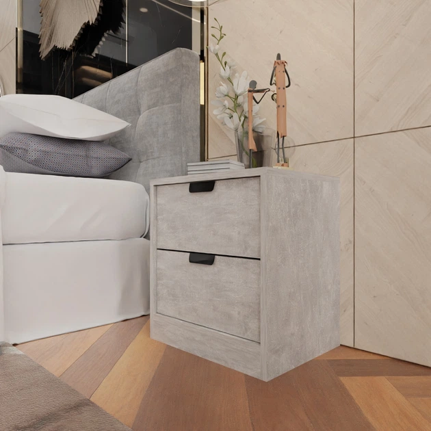 Приліжкова тумбочка з двома висувними ящиками RedWood Стокгольм Ш450*В490*Г350 Бетон RLT203beton