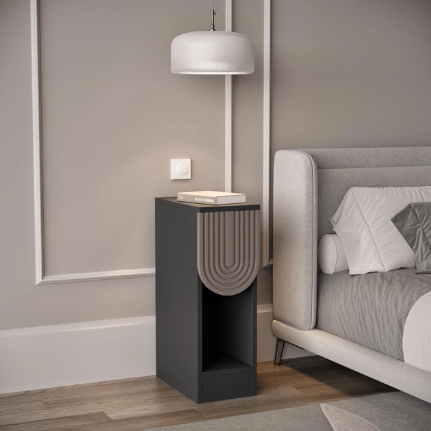 Приліжкова тумбочка вузька з одним ящиком без ручок, тумба для дому з ДСП та МДФ MDF-T-13B+K