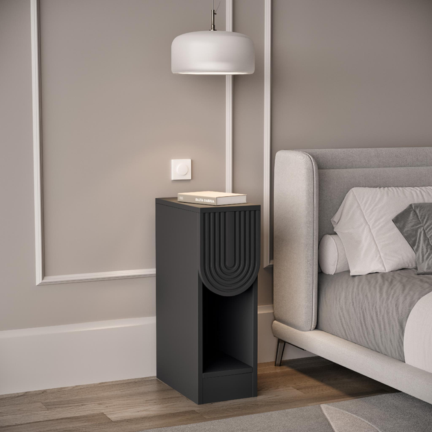 Приліжкова тумбочка вузька з одним ящиком без ручок, тумба для дому з ДСП та МДФ MDF-T-13B+KV