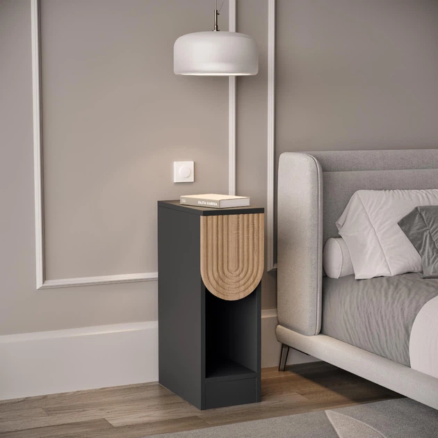 Приліжкова тумбочка вузька з одним ящиком без ручок, тумба для дому з ДСП та МДФ MDF-T-13BT+DK