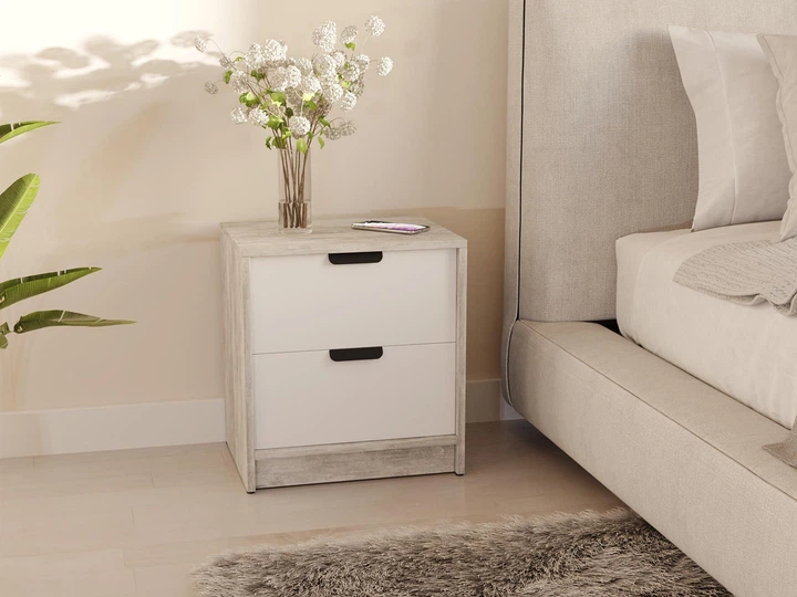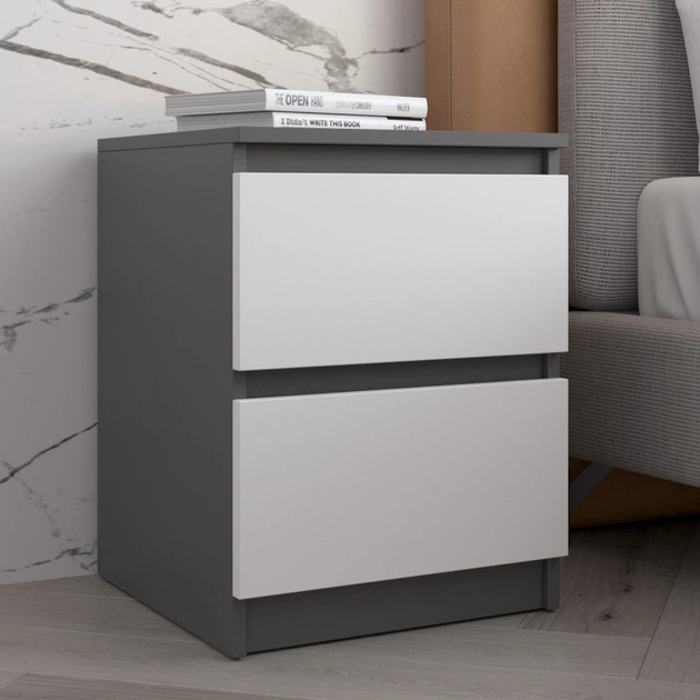 Приліжкова тумба з 2 шухлядами VAYS телескопічні направляючі Антрацит + Білий 40х40х53 см