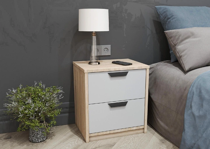 Тумбочка приліжкова в спальню Соната 500х380х500 мм ДСП дуб сонома + білий колір Everest
